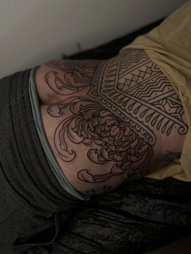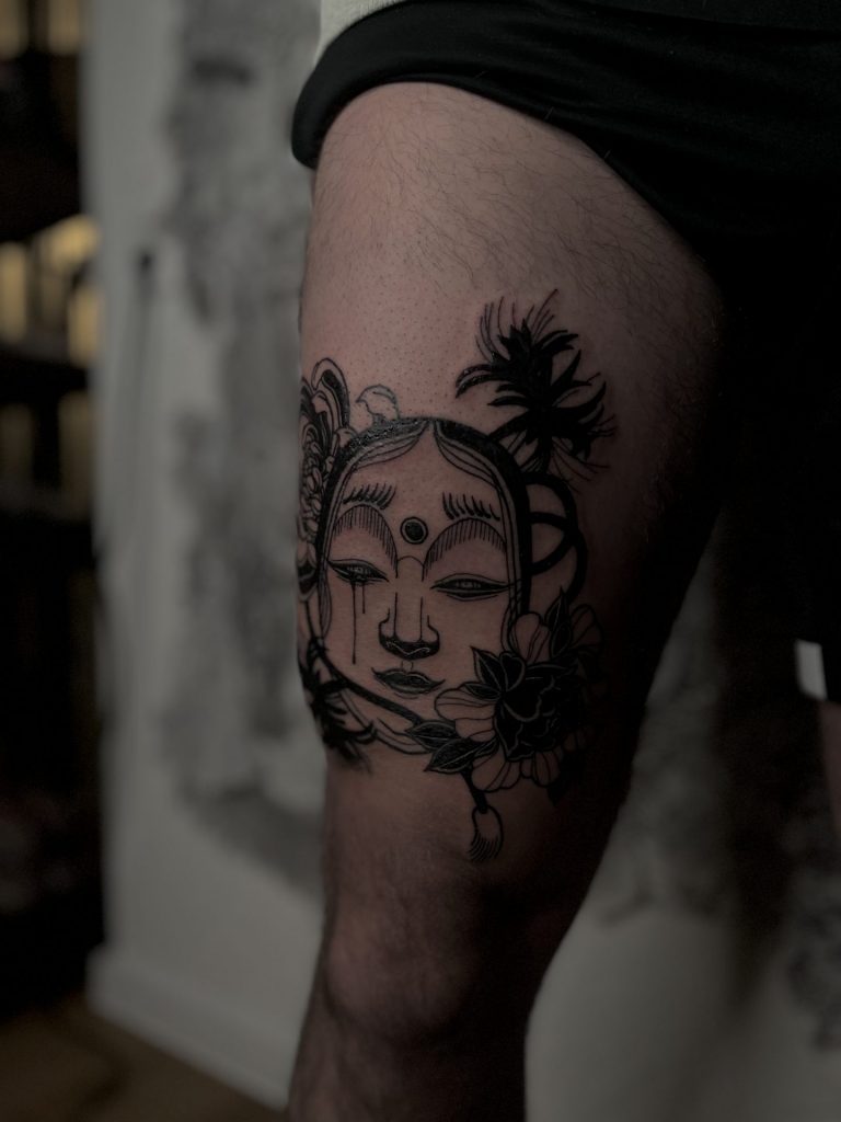 Mit meinen von traditioneller japanischer Kunst und Motivik inspirierten Tattoos versuche ich eine ganz eigene Art des Blackwork zu kreieren. Dabei orientiere ich mich nicht nur an Werken von Hiroshige und Hokusai, sondern auch generell an der japanischen Kultur und Ästhetik, sowie am traditionellen Nō-Theater.