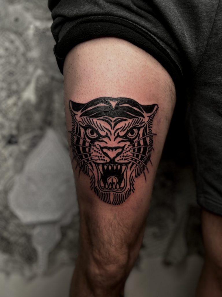 Traditional ist vor allem durch dicke Linien und klar designte Motive geprägt. In der „Einfachheit“ liegt ebenso die Ästhetik dieser Stilrichtung und das Tattoo wirkt kräftig und deutlich.